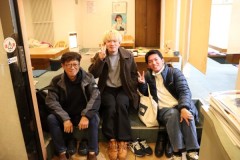 息子さん方と飲み交わす、