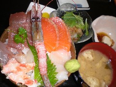 こちらの特別メニューぶどう海老海鮮丼定食、