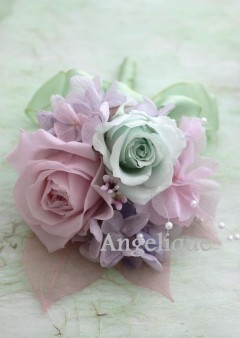 ライトグリーンのドレスにはピンクと紫の小花が散らしてあったので、そのイメージを大切に色を混ぜました。