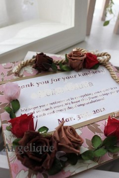 文字は隠してありますが^^;お名前と定年退職の日にち、そして英文のメッセージが添えてあります。