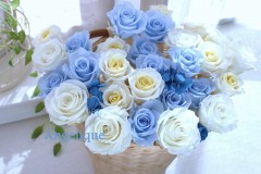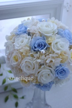 プリザーブドライトブルー×ホワイトのラウンドブーケ