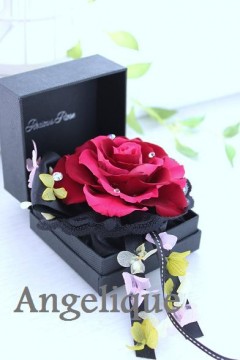 花びらとブラックサテンのリボンにはスワロフスキー。