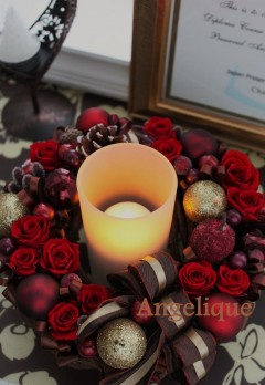 リースは壁にかけるだけではなく、真ん中にキャンドルなどを置いて