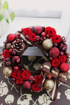 ブラウン×レッドのシックなクリスマスリースを作りました。