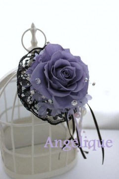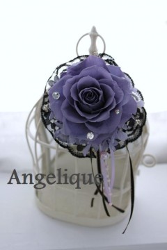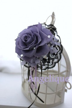 ブラックのレースとスワロフスキーを使ってパープルのコサージュを作りました。