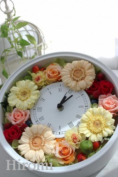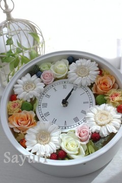 プリザーブドフラワー母の日ギフト・丸型花時計