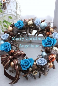 限定1点!ターコイズブルーのローズでクリスマスリース!