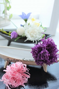 高級菊「アナスタシア」はピンク・ホワイト・パープルの3色。