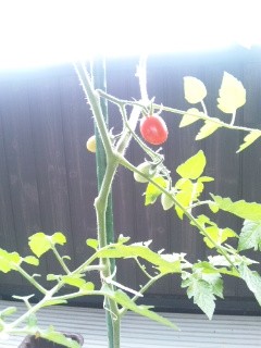でもそんなとき、トマトちゃんが ようやく赤く色がつき 一粒ですがいただきました。