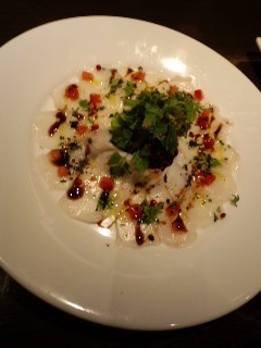 新メニューにタコのカルパッチョが登場しました。軟らかいタコに厳選されたオリーブオイル 塩 パルサミコ スッキリした白ワインと一緒にどうぞ!
