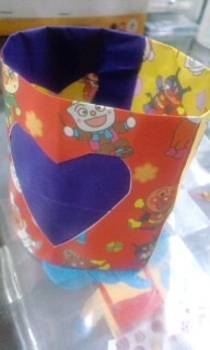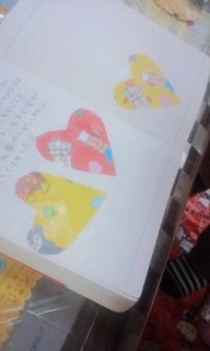 私が 折り紙を切って 子供が のり付け、、、、、