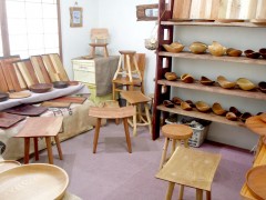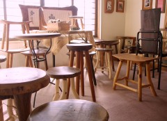 「そばや 一秀」さんの作る椅子と額の展示。