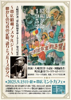 ミントカフェ! 9/15! 大嶋賢洋著「帯広昭和革命1952」発売記念 〜帯広昭和ノスタルジー〜 懐かしの写真の記憶、語りとブルースの夕べ