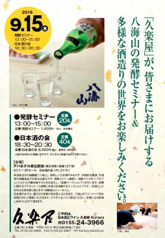 9/15! 久楽屋主催 「発酵セミナー」&「日本酒の会」