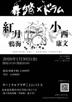 札幌!1/30!「舞踏×ドラム」紅月 鴉海(舞踏) 小西 康文(ドラム)