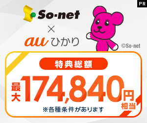 「So-net 光 (auひかり)」ならお得なキャンペーンを実施中!