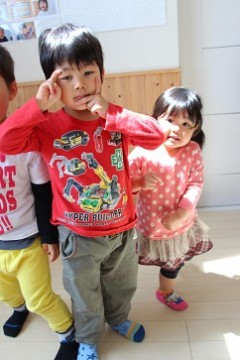 手あそび歌 前に来て手をクルクルとっても上手にできました