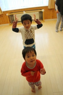 こうしろうくん ポンポン声を出して「ポーズ!」とっても上手にできました