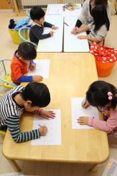 『書き』の時間はみんな集中!〜帯広3歳からの読み書き計算教室