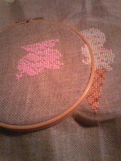 さてさて、クロスステッチの進捗状況ですが、こんな感じ↓