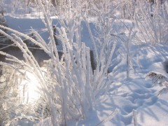 木に氷が付いていて、太陽の光が反射してとても綺麗だよ。