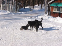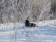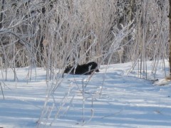 寒い日だけど、雪の中を元気に走り回るのが好きなの。