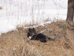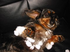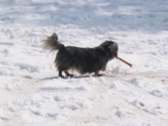 雪の中遊んで歩いたら、雪玉がお腹にいっぱい付いたよ、歩きづらかったよ。