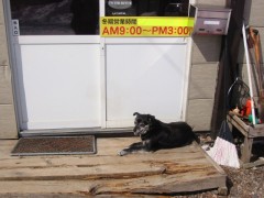 アイお兄ちゃんはドアの前で日向ぼっこしているよ。
