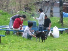 最後に焼き肉をしているお客さんにおこぼれを貰って食べるんだよ。