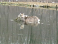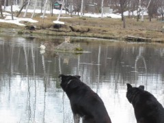 その頃アイとモコは大きい池に来ている鹿を眺めていたよ。