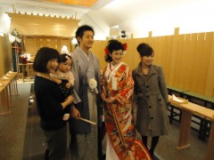 お着物を着た、新郎さんと花嫁さんに姪っ子ちゃんはきょとん顔…