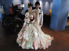 パニエのボリュームに花嫁さんは歩き辛そうでしたが、頑張ってくれました。