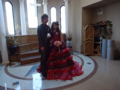 お顔の小さい花嫁さん… 遠目でみてもモデルさんのようです。