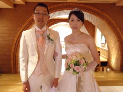 新郎さんのタキシードにベビーピンクのタイなど、爽やかなセレクトも