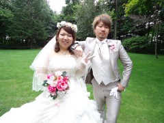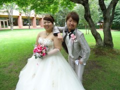 前撮り、夏の終わりだったんだなぁ… 緑のきれいな北海道ホテルのお庭で