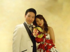 ウエディングドレスは挙式の時に着るそうなので、色打掛とカラードレス2点でした〜