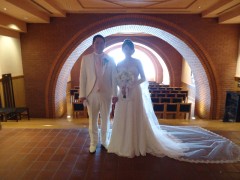 チャペル前で撮影です