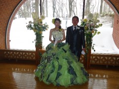 ペイズリー柄と、ライムグリーンのクールカラーなドレス。